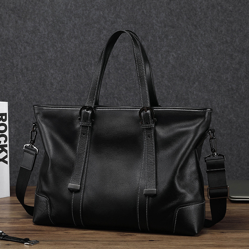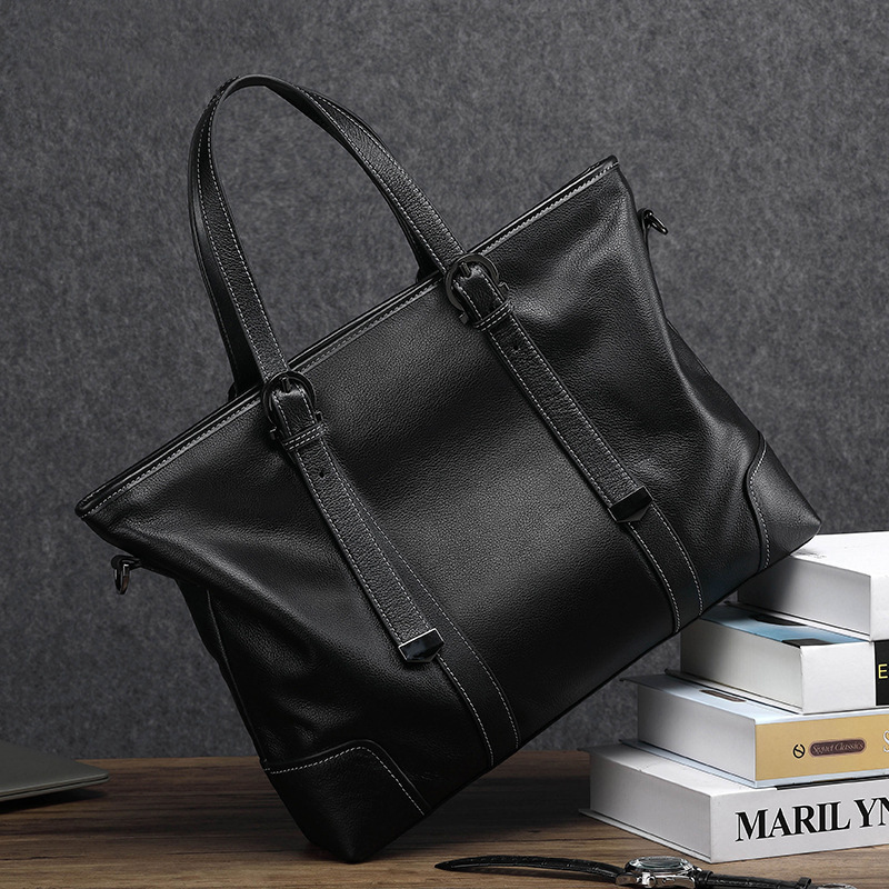 丁寧なステッチワークと丈夫な持ち手が高級感を演出し、通勤や出張にも対応します。